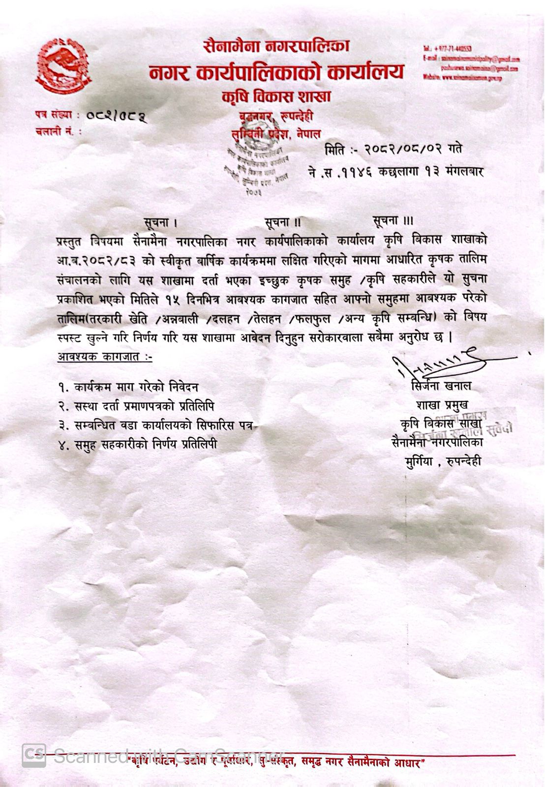 मागकाे अाधारित कृषक तालिम सम्बन्धी सूचना ।