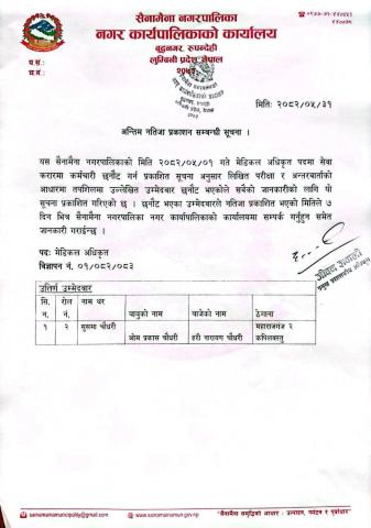 लिखित परीक्षाकाे नतिजा प्रकाशन गरिएकाे सूचना ।