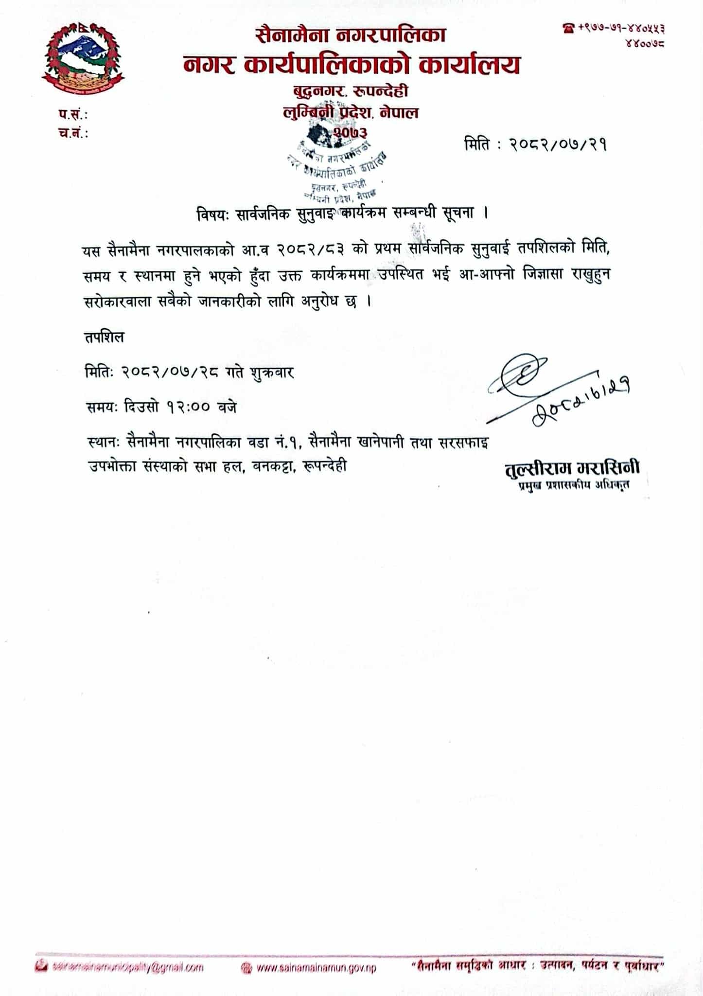 सार्वजनिक सुनुवाई कार्यक्रम सम्बन्धी सूचना ।